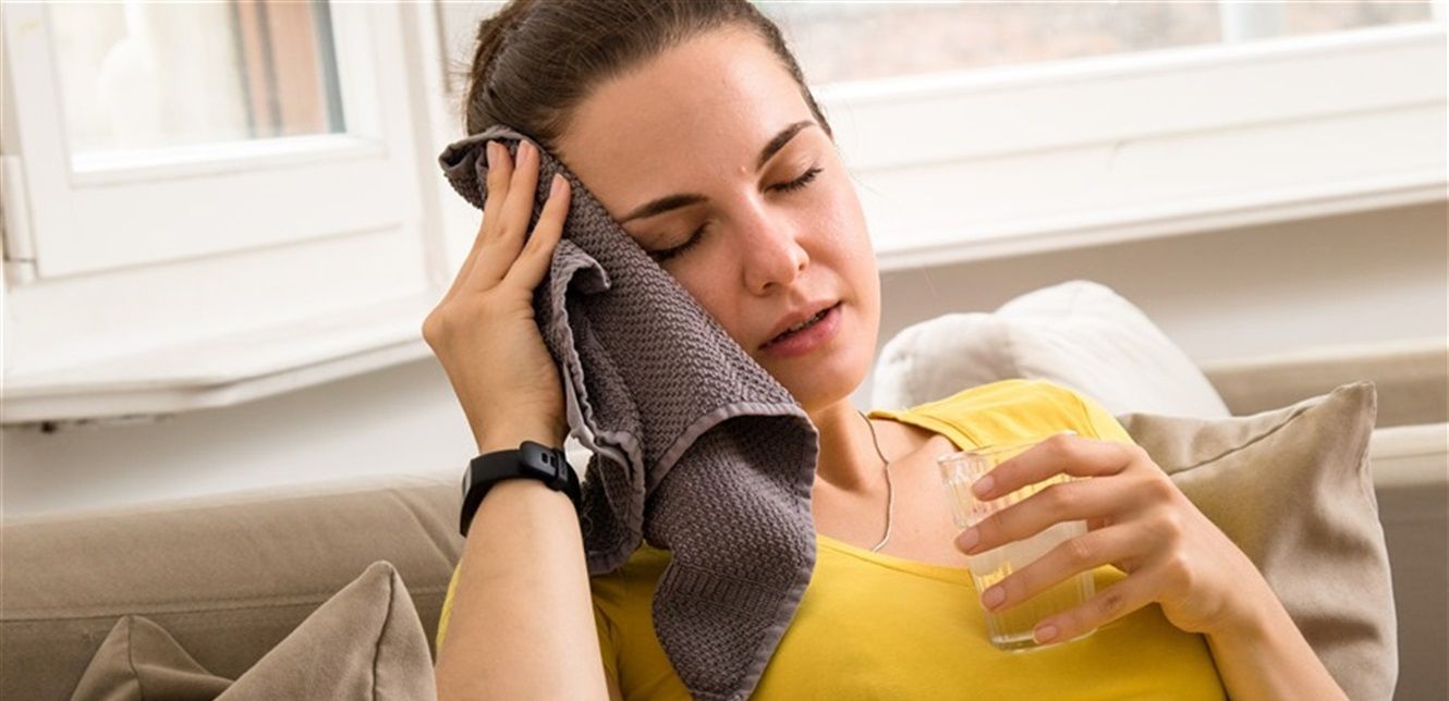 ومن علامات الإصابة بضربة الشمس التعب المفاجئ والصداع والدوخة، وقد يضاف إلى ذلك الغثيان والقيء، وارتفاع حرارة الجلد وجفافه وزيادة النبض.