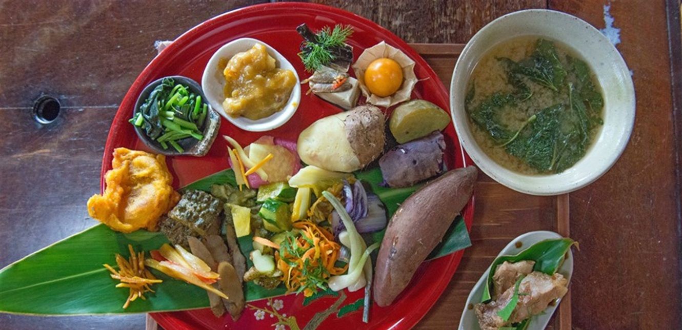 يتمحور النظام الغذائي في أوكيناوا حول الأسماك والمأكولات البحرية، والتوفو، والمكونات النباتية الغنية بالمغذيات.