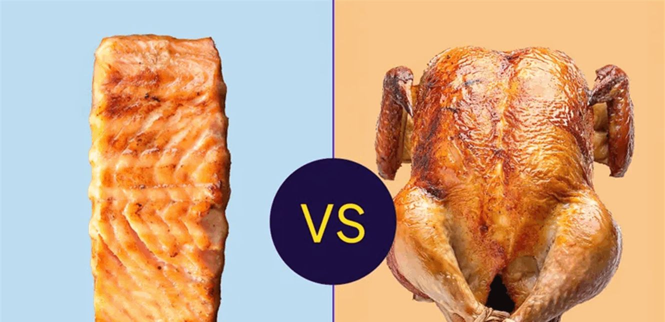 يتشارك المصدران في كونهما بروتينًا كاملًا ويوفران فيتامينات ب والمعادن، لكن السلمون يتفوق في محتوى أوميغا 3 وفيتامين د، بينما يتفوق الدجاج في نسبة البروتين إلى الدهون.