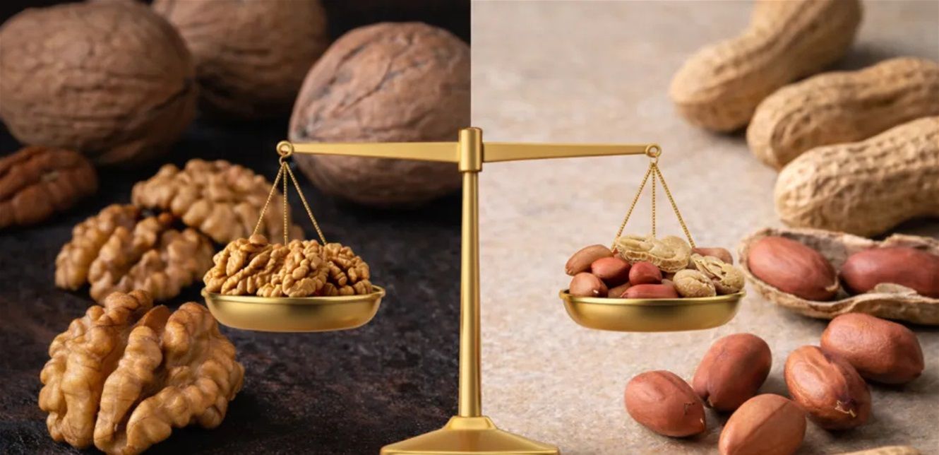 ولكل منهما مزاياه الغذائية الخاصة؛ إذ يتميّز الجوز بمحتوى أعلى من الدهون الصحية المفيدة للقلب، بينما يوفّر الفول السوداني كمية أكبر نسبيا من البروتين وبعض العناصر الغذائية.