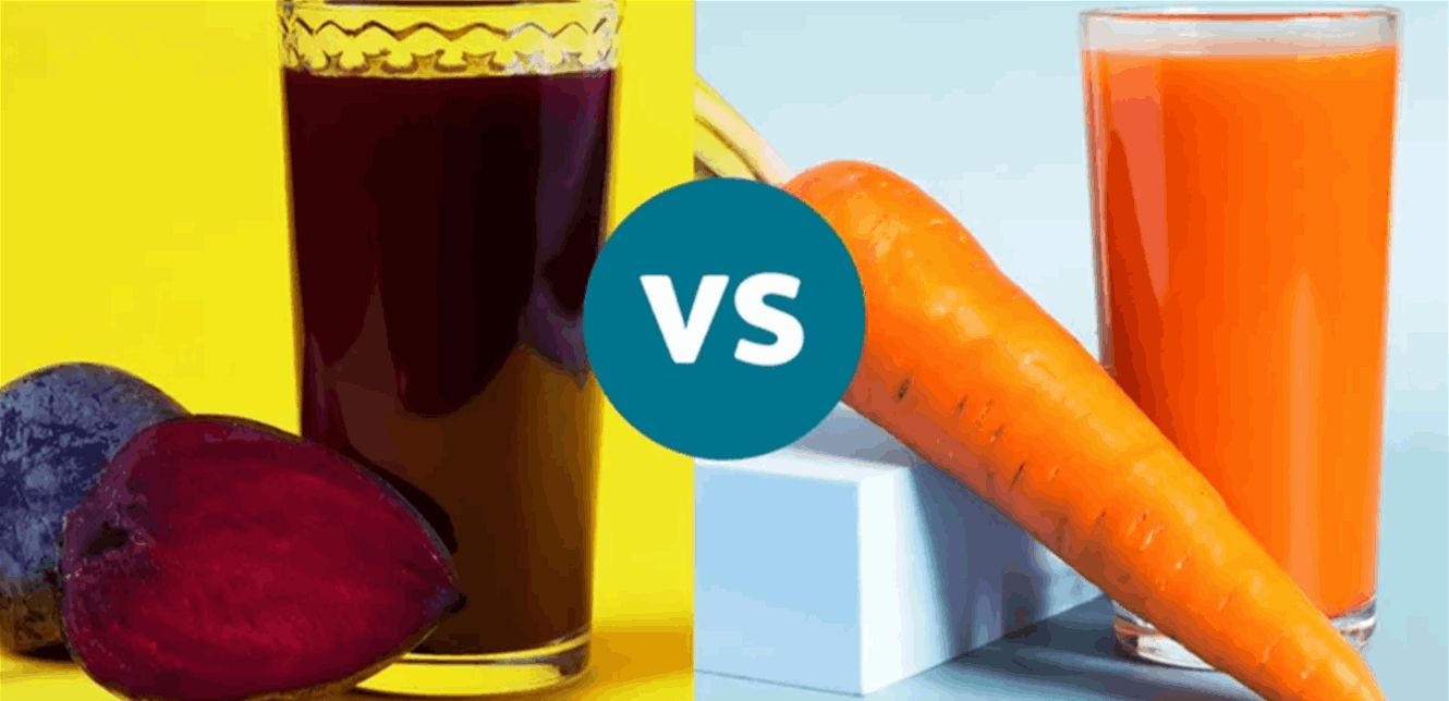 عصير الجزر: يحتوي على نسبة أعلى بكثير من فيتامين أ والبيتا كاروتين الضروريين لصحة العين والجلد والمناعة، كما أنه أغنى بفيتامين ج وفيتامين ك والكالسيوم والبوتاسيوم.