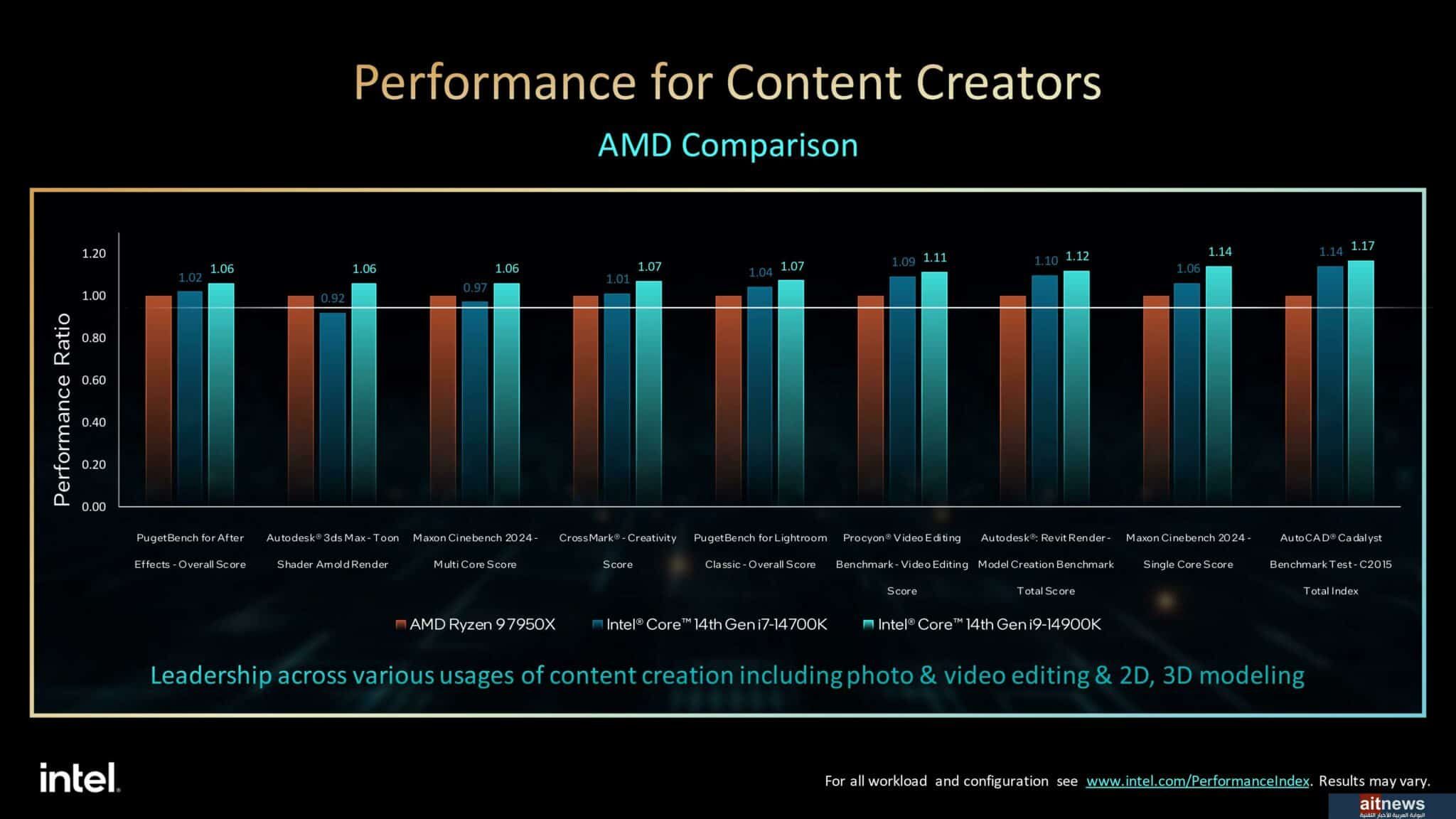 علق السيد روجر تشاندلر، نائب رئيس شركة إنتل والمدير العام لمجموعة حوسبة العملاء، محطات العمل والحواسيب الموجهة للمتحمسين قائلا “منذ طرح معماريتنا الهجينة عالية الأداء، استمرت إنتل برفع مستوى أداء المعالجات المكتبية. ومع معالجات Core من الجيل الرابع عشر، نؤكد مرة أخرى سبب لجوء المتحمسين إلى إنتل للحصول على أفضل تجربة مكتبية متاحة في السوق اليوم”