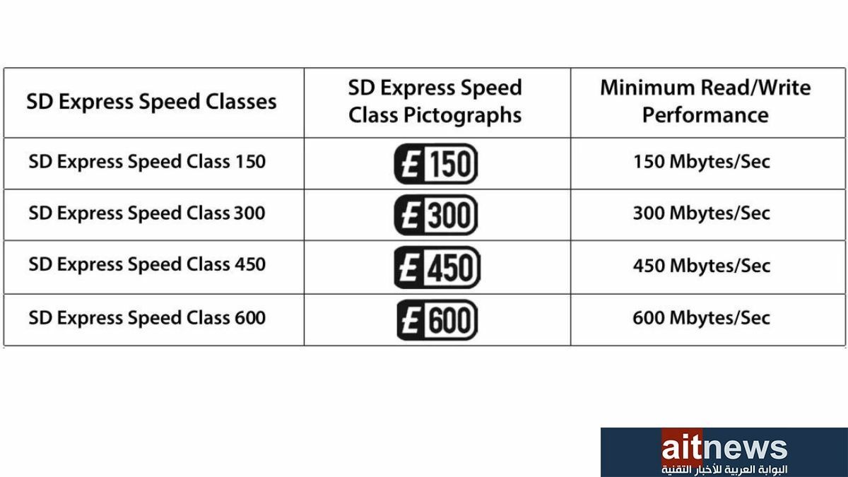 بالإضافة إلى ذلك، تقدم مواصفات 9.1 نظامًا جديدًا لوضع العلامات الخاصة على بطاقة الذاكرة للإشارة إلى فئة السرعة التي يتطلبها كل جهاز وما تدعمه كل بطاقة SD Express.