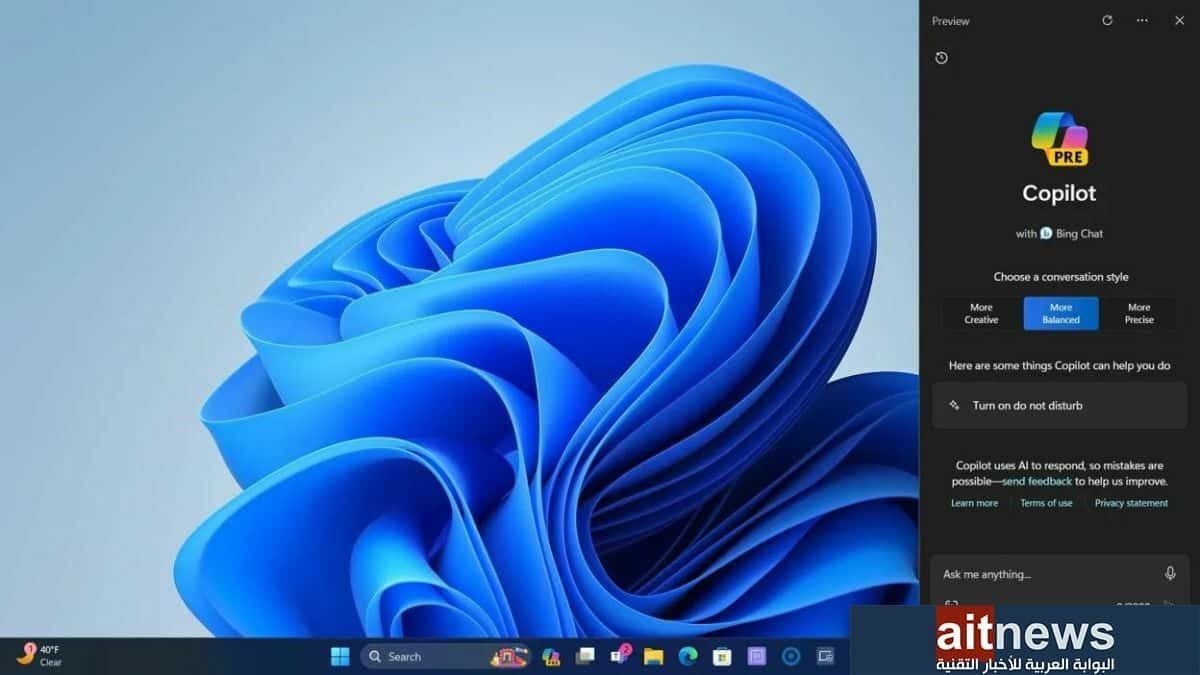يُعد أكبر تغيير في تحديث نظام ويندوز 11 الأخير، هو إدماج المساعد الذكي الجديد (كوبايلت) Copilot الذي يستند في عمله إلى الذكاء الاصطناعي التوليدي على مستوى النظام.
