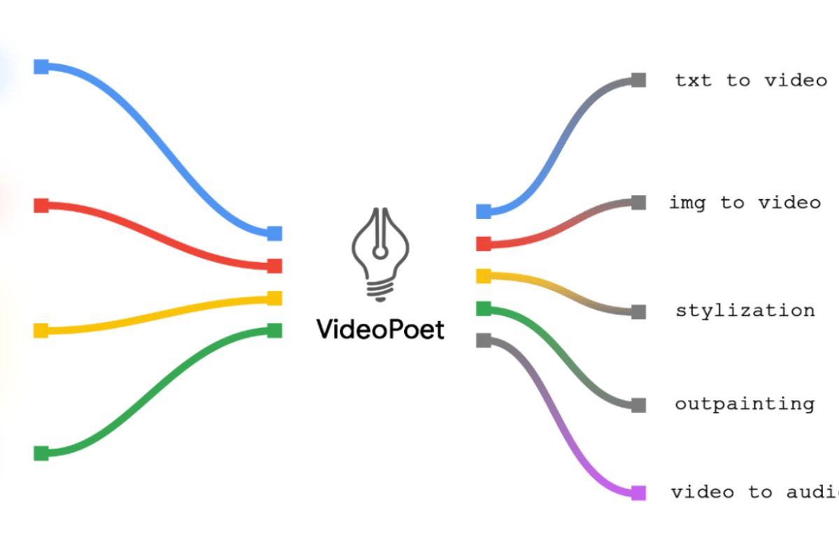 كشفت جوجل عن نموذجها اللغوي الكبير الجديد لتوليد الفيديو المسمى VideoPoet، وهو مصمم من أجل أداء مجموعة من المهام، ومنها تحويل النص إلى فيديو، وتحويل الصورة إلى فيديو، وتحويل الفيديو إلى صوت.