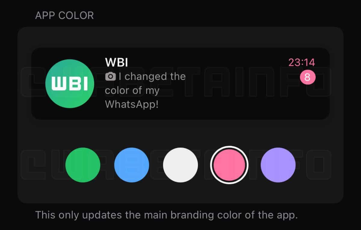 تختبر منصة المراسلة الفورية واتساب إعدادات جديدة في تطبيق هواتف آيفون تتيح للمستخدمين إمكانية تغيير اللون الافتراضي للتطبيق إلى عدة ألوان أخرى.