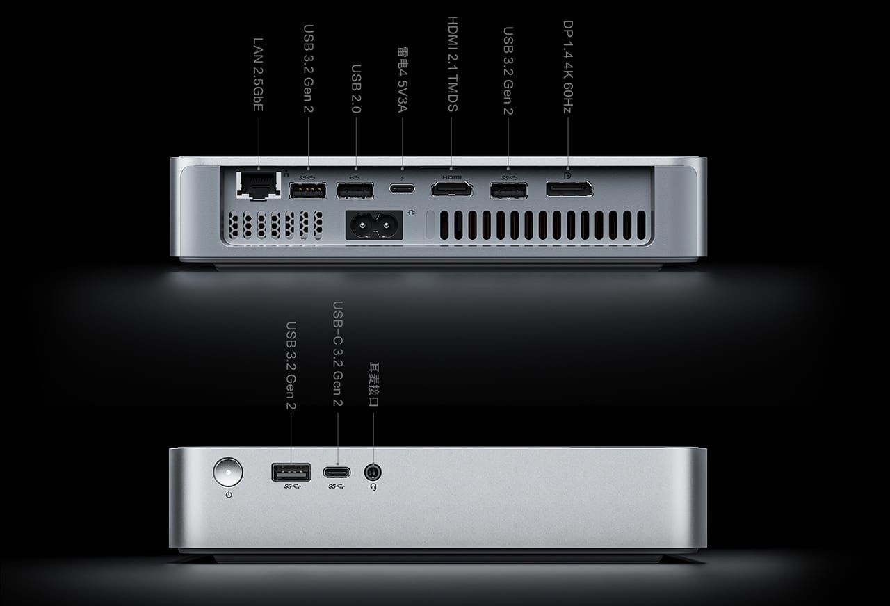 ويتميز الجزء الخلفي من الحاسوب بمنفذ LAN 2.5G ومنفذي USB 3.2 ومنفذ HDMI 2.1 ومنفذ DisplayPort 1.4 ومنفذ Thunderbolt 4.