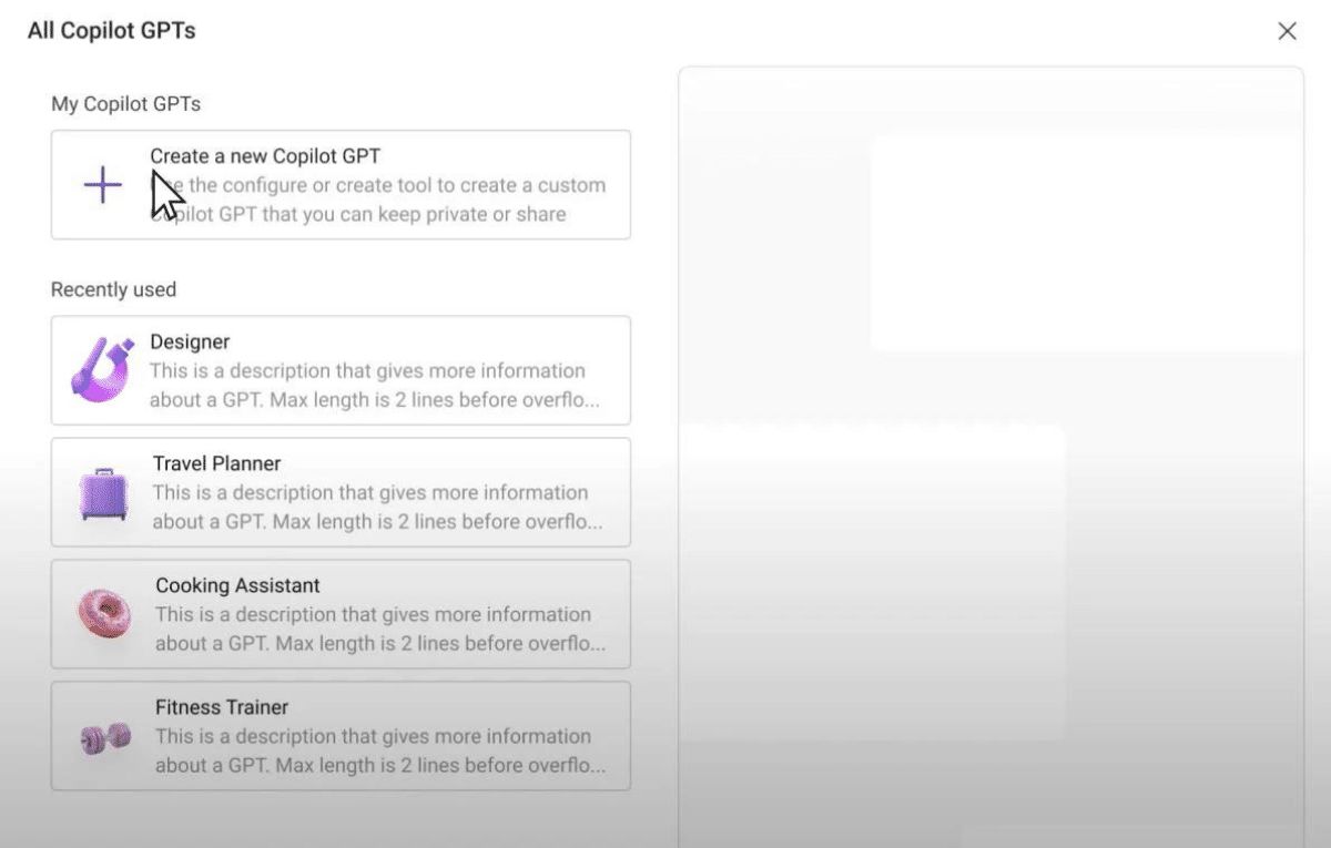 ومن المحتمل أن تصدر الشركة المزيد من القوالب التي يمكن للمستخدمين استخدامها عند إنشاء نماذج الذكاء الاصطناعي Copilot GPTs، إذ لا يوجد إلا 4 قوالب حتى الآن، مع أنها تلبي أغراضًا وتطبيقاتًا مختلفة.