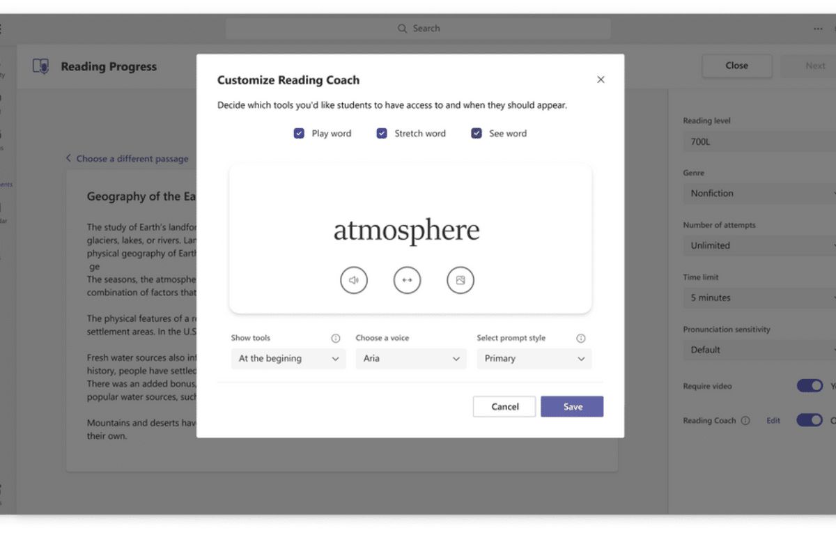 ويعتمد Reading Coach على Reading Progress، وهي إضافة للمنصة التي تركز على التعليم Teams for Education، المصممة لمساعدة المعلمين في تعزيز طلاقة القراءة لدى طلابهم.