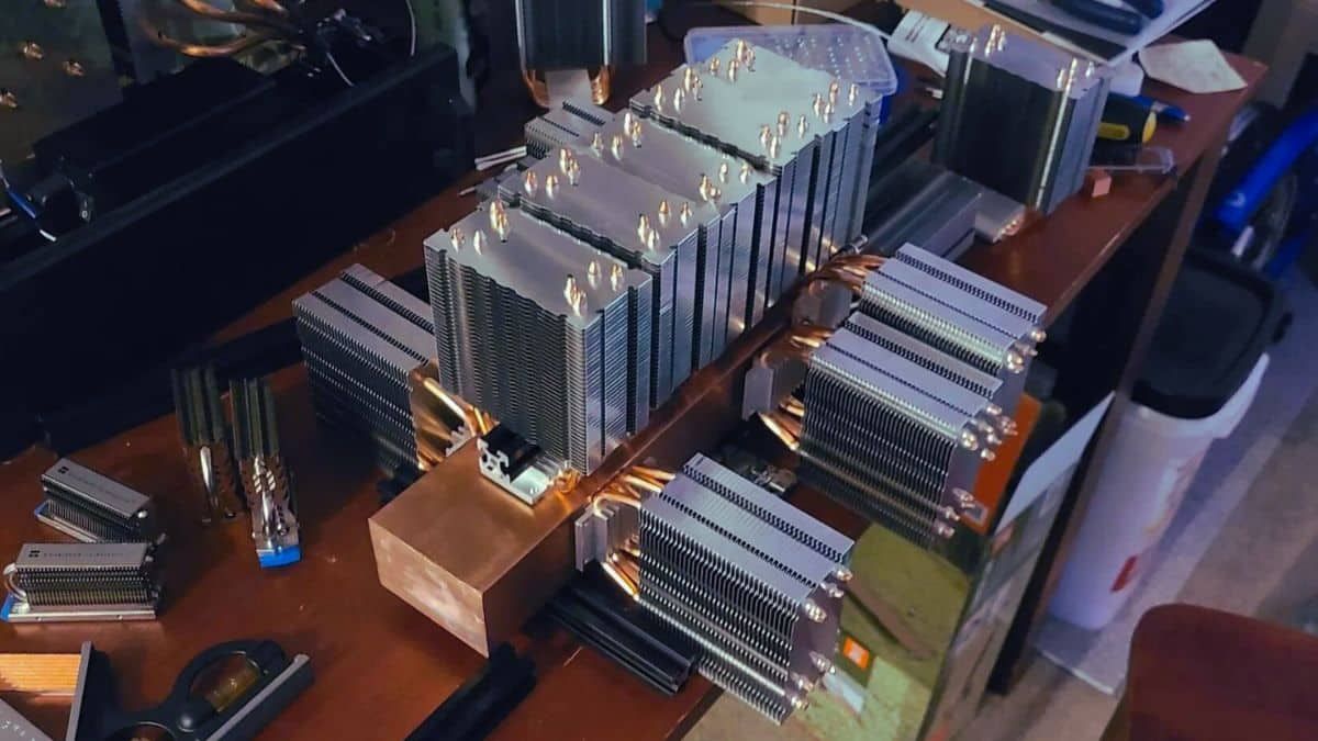 ويأتي المبرد السلبي المستخدم مع البطاقة الرسومية إنفيديا RTX 3080 مزودًا بعشرة مبردات مخصصة للمعالجات المركزية، إذ ركز صاحب المشروع على تثبيت قاعدة نحاسية مستطيلة الشكل وبحجم ضخم مع إدماج 10 مبردات مخصصة للمعالجات المركزية.
