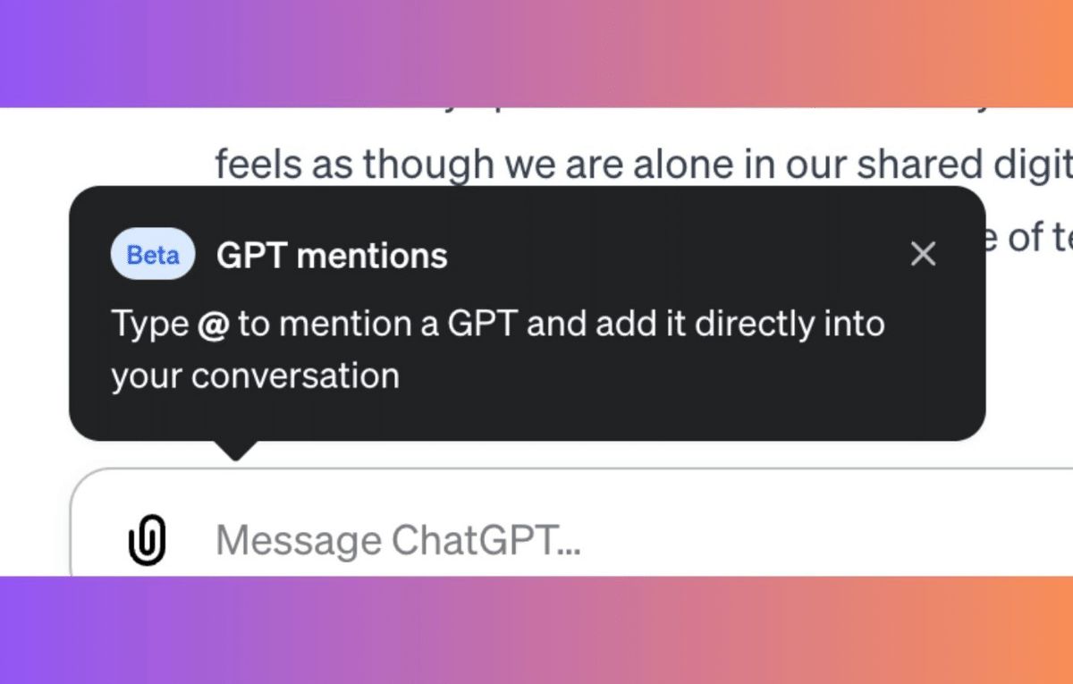 وأصبح بإمكان مستخدمي ChatGPT الذين يدفعون بدءًا من الآن استدعاء GPTs إلى المحادثة عن طريق كتابة @ واختيار GPT من القائمة.