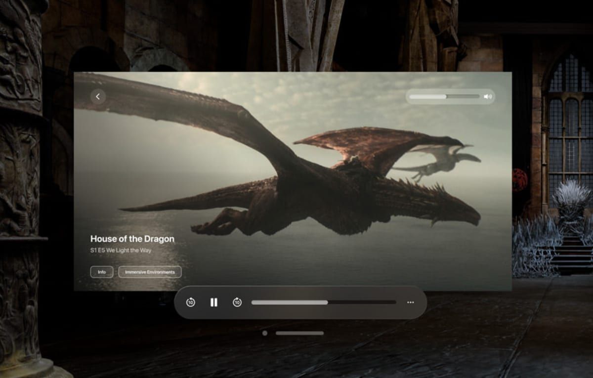 ومن أبرز التطبيقات المتاحة للنظارة الجديدة تطبيقات بث المحتوى مثل آبل تي في بلس وديزني بلس وباراماونت بلس وماكس وغيرها، وتتيح تلك التطبيقات مشاهدة بعض المحتوى بشكل ثلاثي الأبعاد بجودة عالية مع تقنية الصوت المكاني و Dolby Atmos، في حين تغيب تطبيقات أخرى مهمة مثل يوتيوب ونتفلكس.