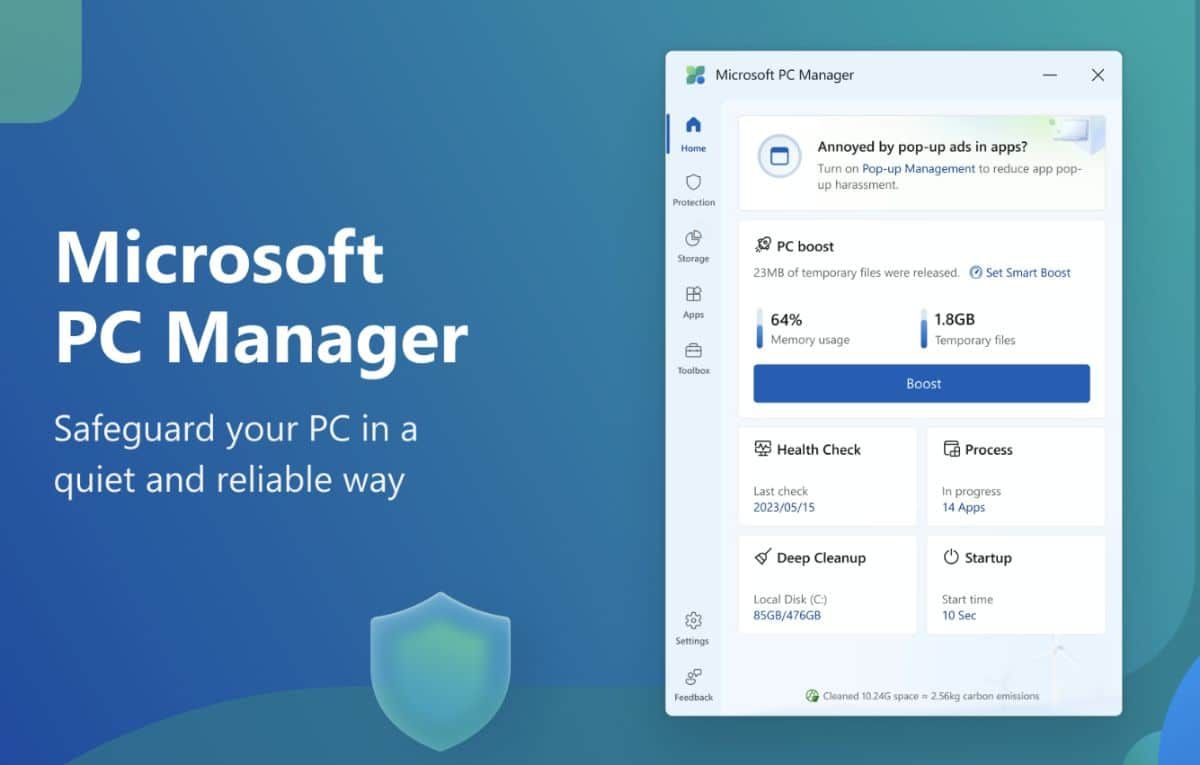 وتطرح مايكروسوفت تطبيق PC Manager على نطاق واسع، ويمكن للمستخدمين تحميله مجانًا من متجر التطبيقات الرسمي التابع لها على أجهزتهم العاملة بنظام ويندوز 10 أو 11، علمًا بأنه تطبيق صغير الحجم لا يستهلك موارد الأجهزة.