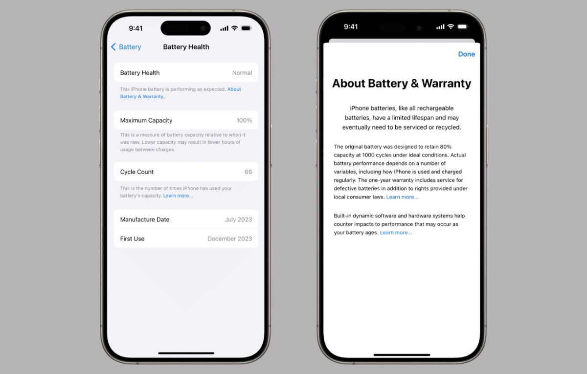 وينطبق هذا التغيير على أجهزة آيفون 15 وآيفون 15 بلس وآيفون 15 برو وآيفون 15 برو ماكس فقط، مع استمرار تصنيف الأجهزة السابقة عند مقدار 500 دورة.