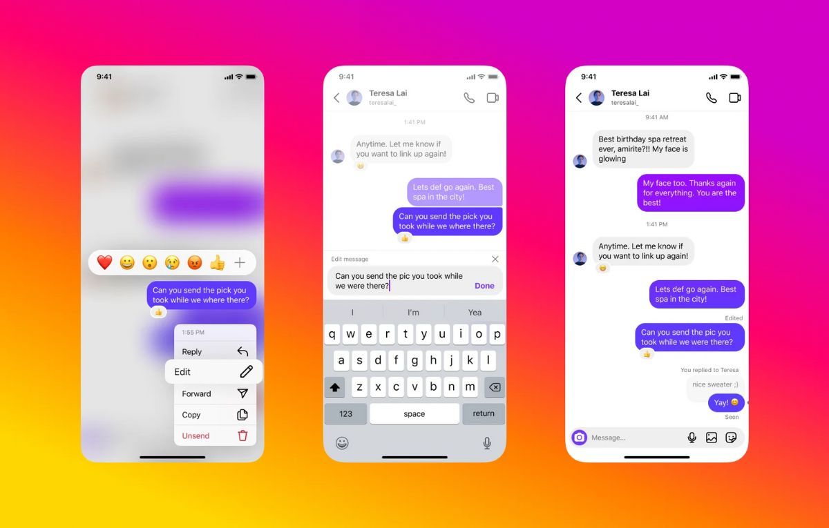 أعلنت منصة مشاركة الصور ومقاطع الفيديو إنستاجرام خيارات جديدة لميزة المراسلة المباشرة Direct Messages، التي يُشار إليها اختصارًا DM، ومنها إمكانية تعديل الرسائل بعد إرسالها لمدة تصل إلى 15 دقيقة.