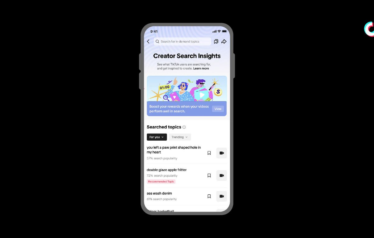 طرحت تيك توك ميزة جديدة تسمى رؤى بحث منشئي المحتوى Creator Search Insights، مما يسمح لمنشئي المحتوى بتتبع مصطلحات البحث الشائعة عبر المنصة.