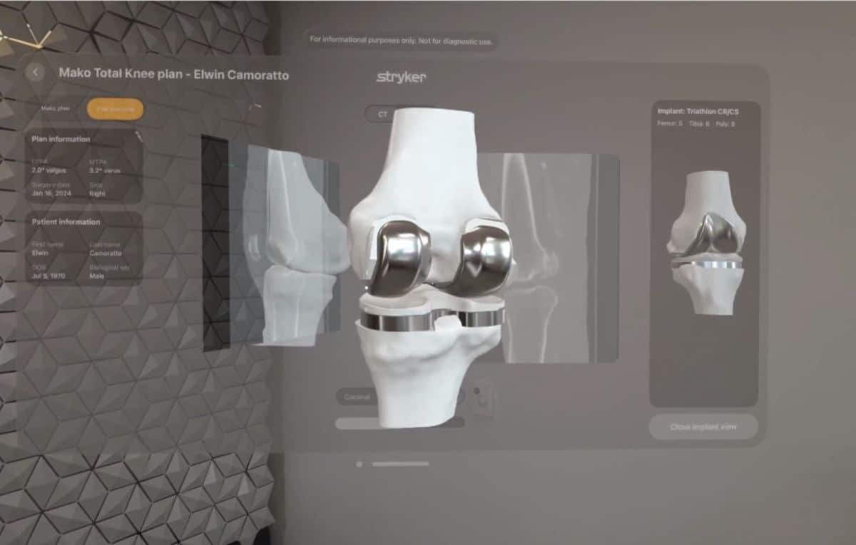 يتيح تطبيق myMako المصمم خصوصًا لنظارة Apple Vision Pro للجراحين القدرة على الوصول إلى تفاصيل الخطة الجراحية المعقدة؛ إذ يسمح هذا التطبيق للجراحين بتصور ومراجعة الخطط الجراحية للمرضى في أي وقت في تجربة بصرية غامرة وثلاثية الأبعاد.