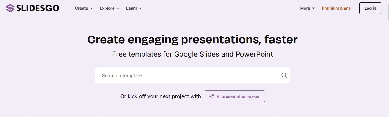 تستند أداة (Slidesgo) في عملها إلى الذكاء الاصطناعي لمساعدتك في إنشاء عروض تقديمية احترافية وجذابة، إذ توفر لك مجموعة واسعة من القوالب المصممة سابقًا، وتقدم لك اقتراحات ذكية حول التصميم والمحتوى.