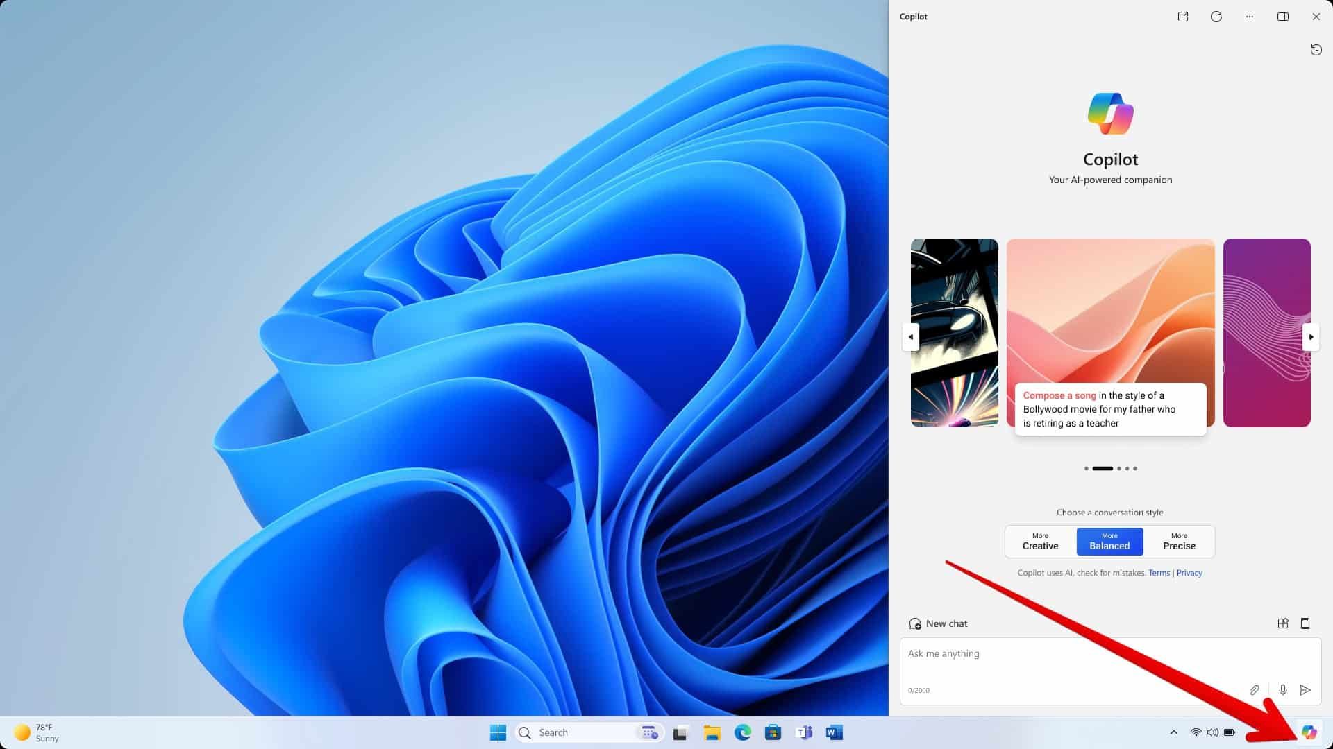- اضغط على اختصار (Win + C) في لوحة المفاتيح لتشغيل مساعد (Copilot).
