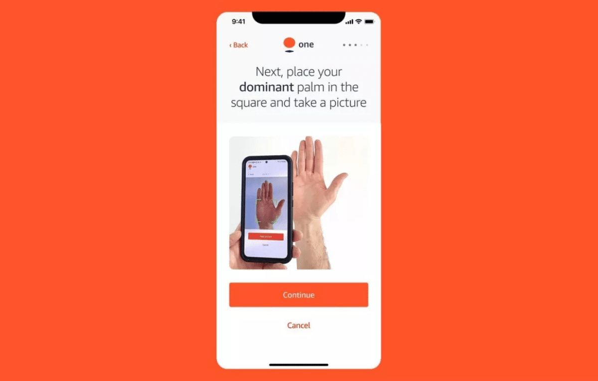 أعلنت أمازون إطلاق تطبيقها الجديد لخدمة تعرف راحة اليد دون تلامس تتيح للعملاء تمرير راحة يدهم فوق الجهاز للشراء من أماكن محددة Amazon One.