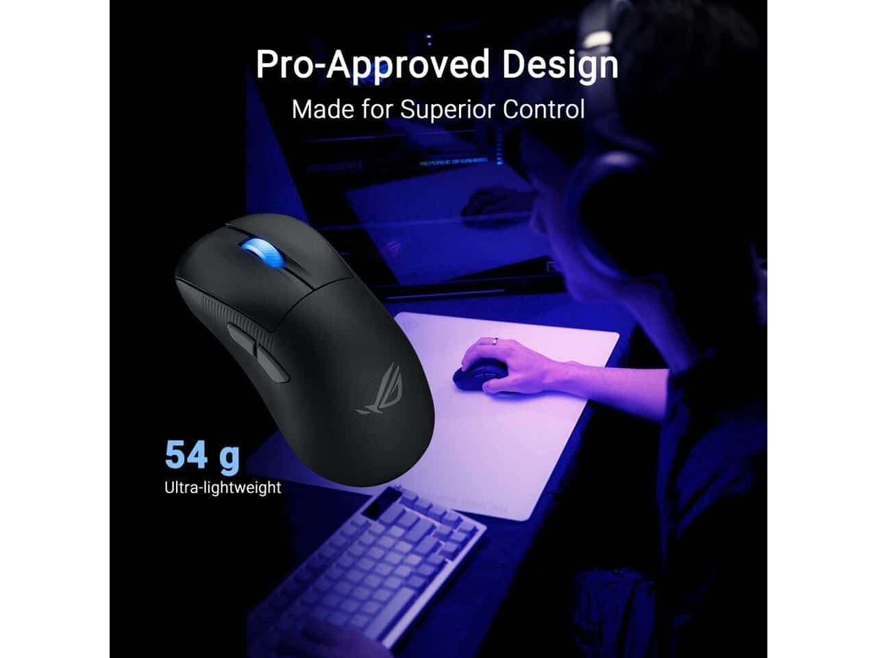 ومن مزايا هذه الفأرة أنها تعتمد على المستشعر الضوئي ROG AimPoint Pro العالي الدقة الذي يصل إلى 42 ألف نقطة في البوصة (DPI) لضمان تتبع الحركة بدقة فائقة، كما يتميز هذا المستشعر بقدرته على العمل على الأسطح الزجاجية دون أن يسبب الانعكاس أي مشكلة في الاستجابة.