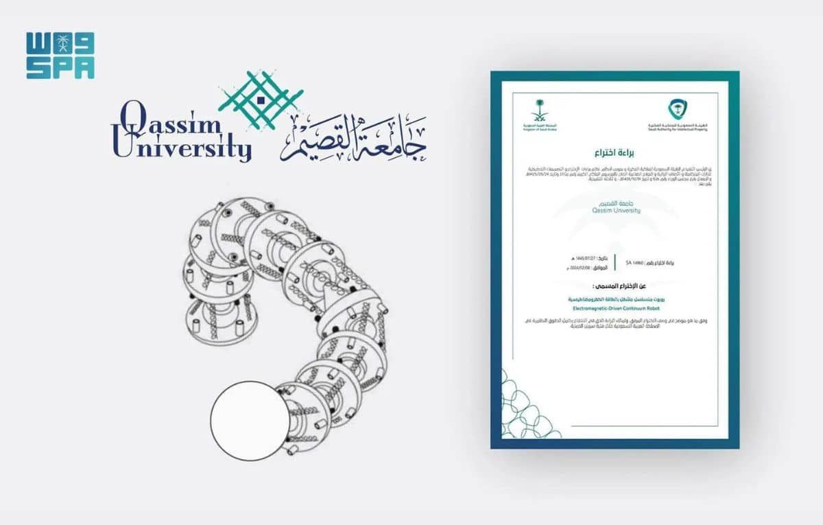 حصلت جامعة القصيم على براءة اختراع من الهيئة السعودية للملكية الفكرية، عن ابتكار روبوت متسلسل يمكن تشغيله بالطاقة الكهرومغناطيسية بدلًا من الطرق الاعتيادية لتشغيل الروبوتات.