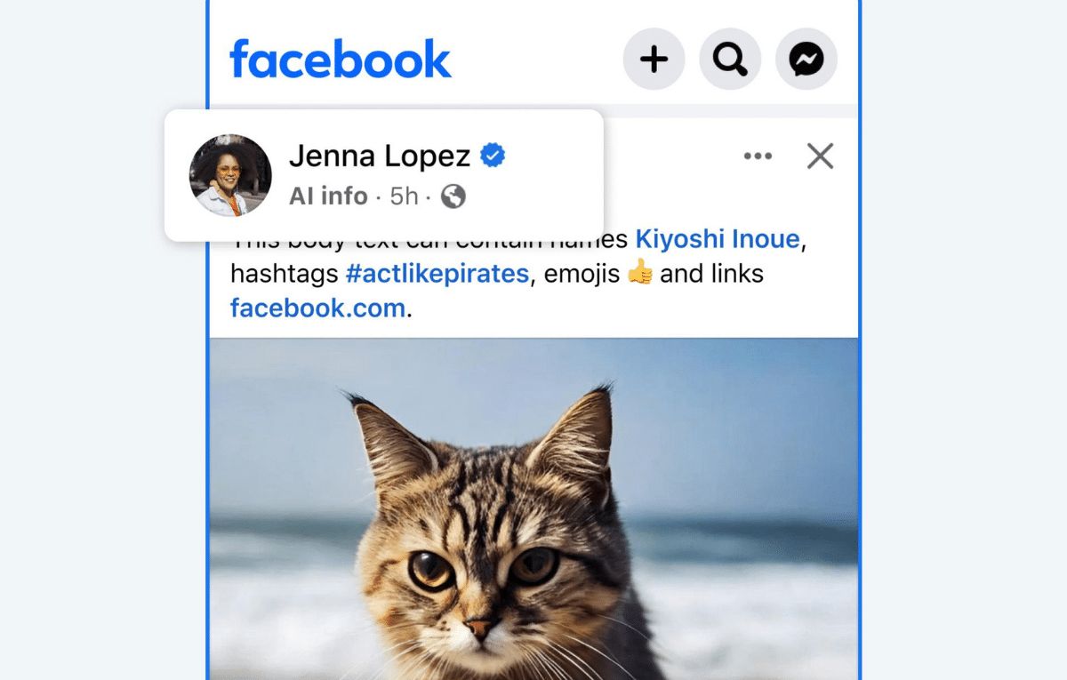 أعلنت ميتا أنها تحدث علامة “صنع بالذكاء الاصطناعي” Made with AI إلى “معلومات الذكاء الاصطناعي” AI info عبر تطبيقاتها، ويمكن للأشخاص النقر على العلامة للحصول على معلومات إضافية.