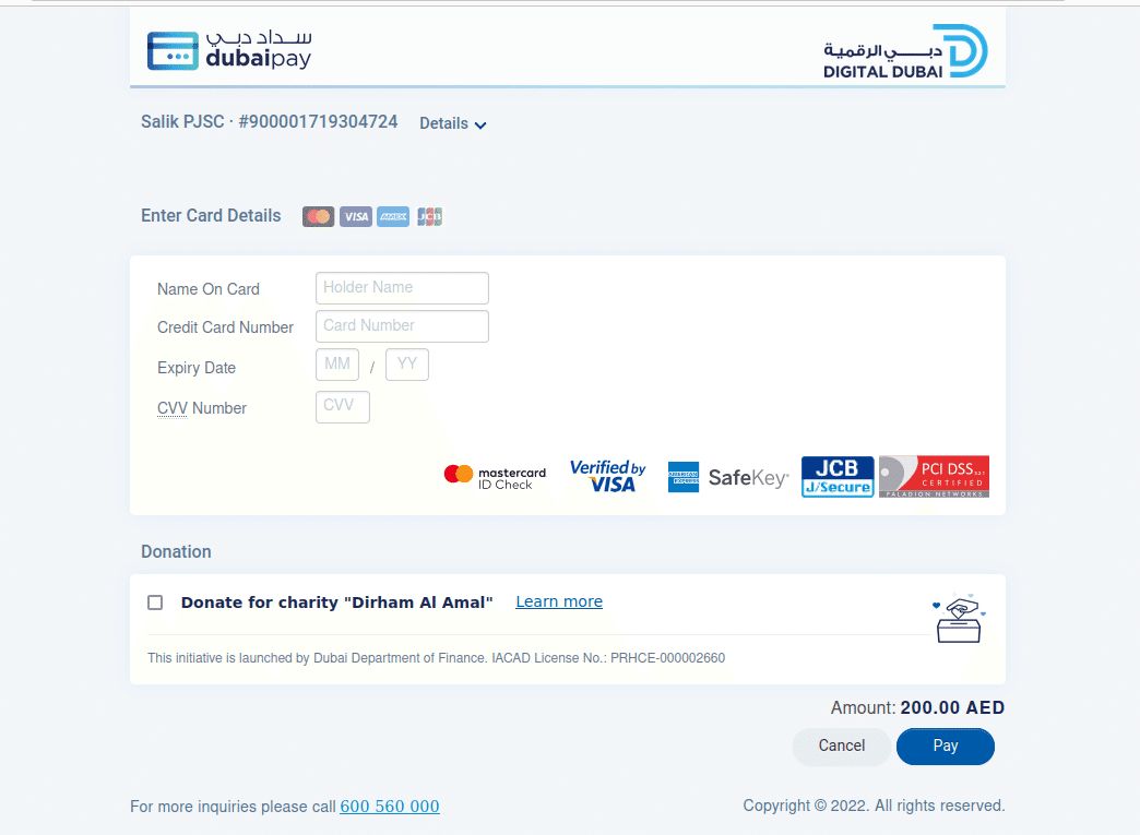 وعند فتح الصفحة، يُطلب من الضحايا مشاركة بيانات الدفع، وبإرفاق خيار لتقديم تبرع خيري زائف، يمكن للمخادعين استغلال الهوية العالية الاحترام لهيئة دبي الرقمية، التي تستفيد من التقنيات الناشئة لتأمين سهولة الدفع لمواطنيها.
