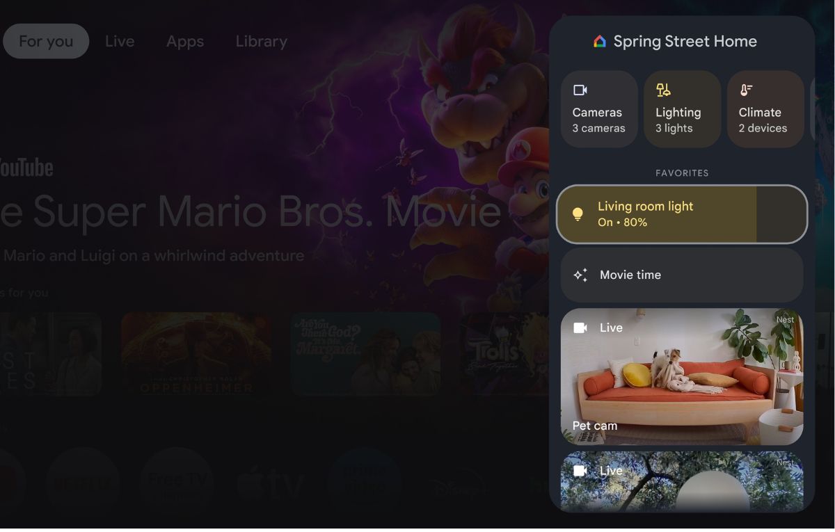وتتيح لوحة الصفحة الرئيسية الجديدة عبر Google TV للمستخدمين إدارة أجهزة المنزل الذكية المتوافقة، مثل الأضواء، ومنظمات الحرارة، والكاميرات، من جهاز التحكم من بُعد.