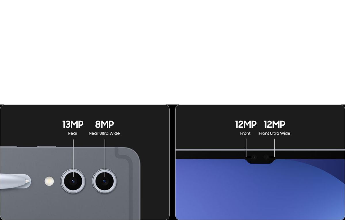 يتميز Tab S10 Ultra بكاميرات أمامية مزدوجة تأتي كل واحدة بدقة قدرها 12 ميجابكسل وتوجد في منتصف الإطار في الوضع الأفقي للجهاز، مما يجعلها مثالية لمكالمات الفيديو.