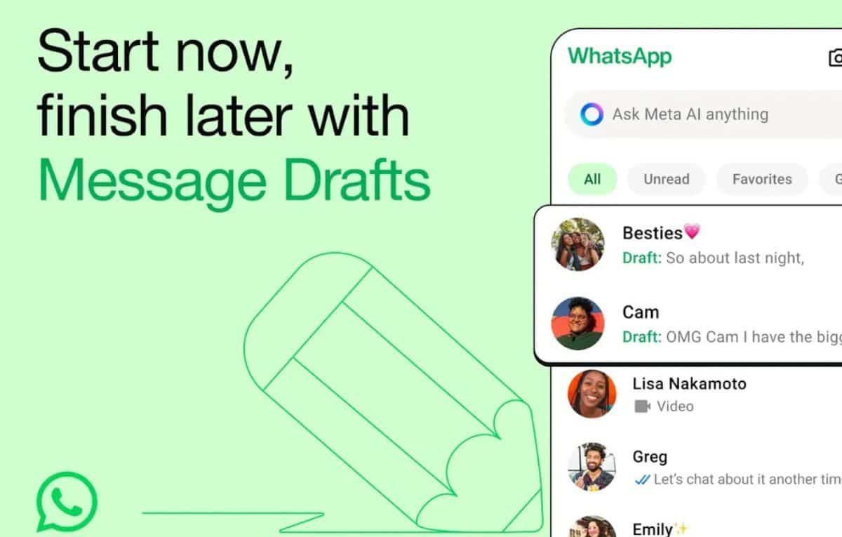 أعلنت شركة ميتا بدء طرح ميزة “مسودات الرسائل” الجديدة في تطبيق واتساب للمستخدمين، وتهدف هذه الميزة إلى حفظ الرسائل غير المكتملة، أو التي لم تُرسل بعدُ في المحادثات.