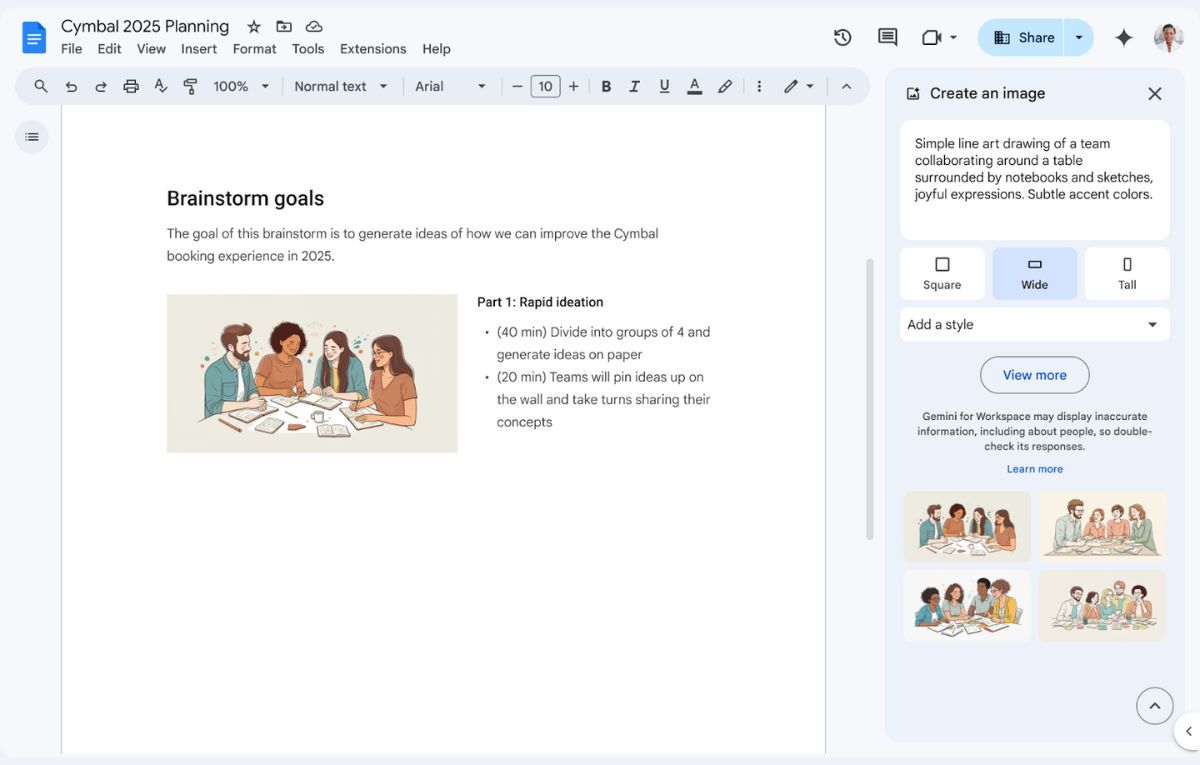 ويتيح هذا التحديث للمستخدمين استخدام روبوت Gemini، المدعوم بنموذج توليد الصور Imagen 3، لإنشاء صور وتصاميم مُخصصة مباشرةً داخل المستندات.