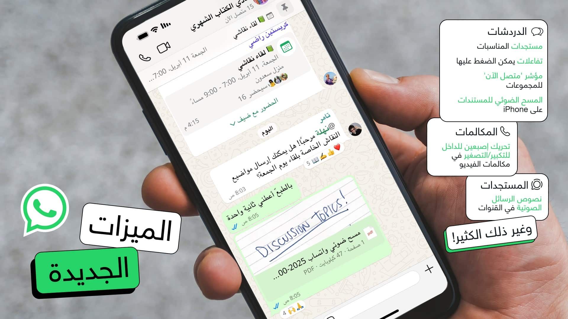 وتأتي هذه التحديثات ضمن جهود واتساب لمواكبة تفضيلات المستخدمين واحتياجاتهم، وتعزيز وجودها أمام منصات المحادثات الفورية الأخرى.