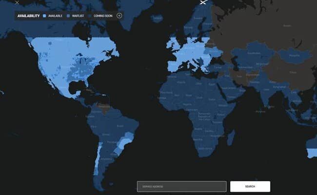 وشاركت ستارلينك https://twitter.com/SpaceX/status/1524911035118825472 عبر تويتر تظهر خريطة توفر الخدمة، التي توضح أن الخدمة متاحة في معظم أنحاء أوروبا وأمريكا الشمالية، بالإضافة إلى أجزاء من أمريكا الجنوبية وأستراليا ونيوزيلندا.