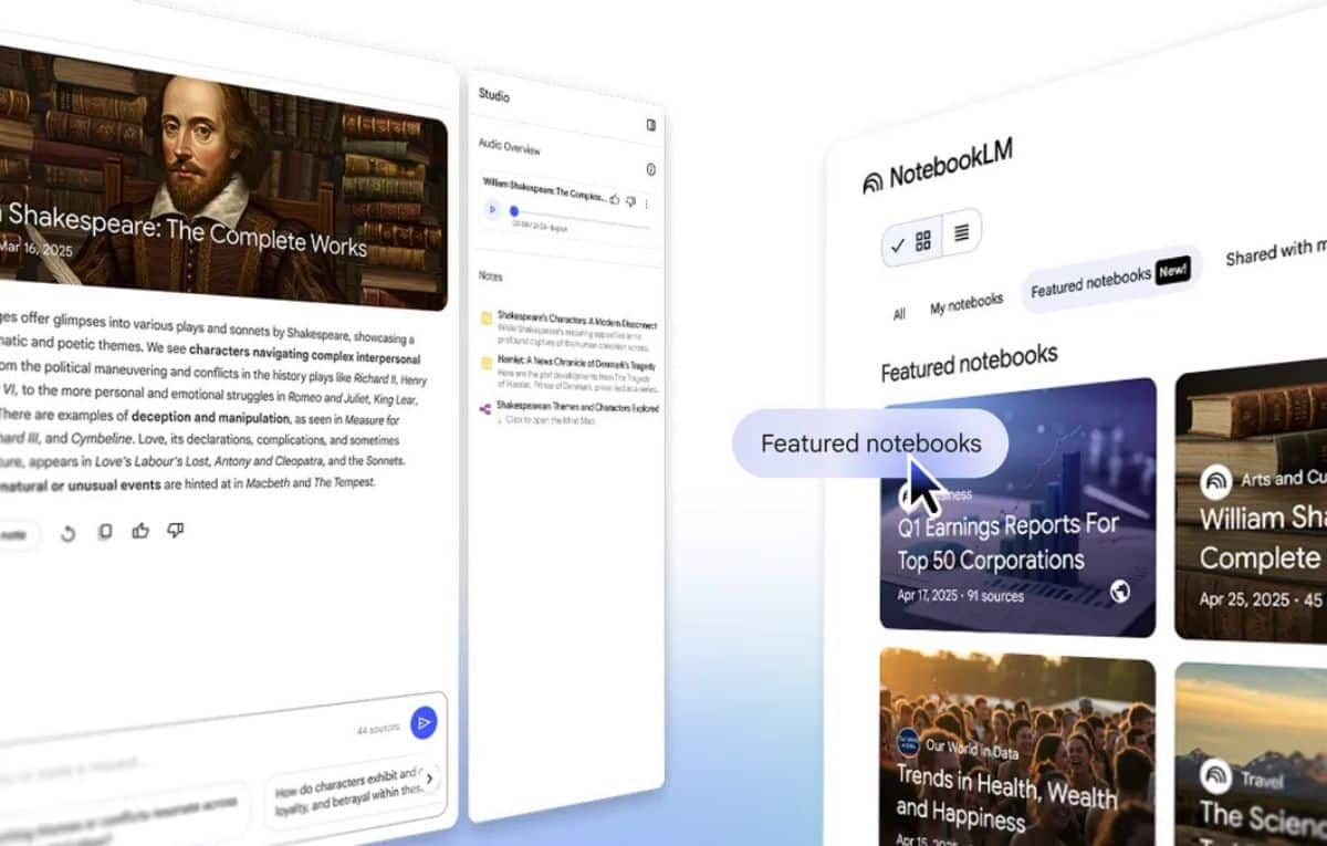 أعلنت جوجل إضافة ميزة جديدة تُسمى “الدفاتر المميزة Featured Notebooks” إلى منصة الملاحظات NotebookLM، في خطوة تهدف إلى تعزيز قدرات الأداة المدعومة بالذكاء الاصطناعي، وتقديم مصادر معرفية تفاعلية وعالية الجودة تغطي موضوعات متنوعة، من النصائح الشخصية إلى أعمال وليام شكسبير.