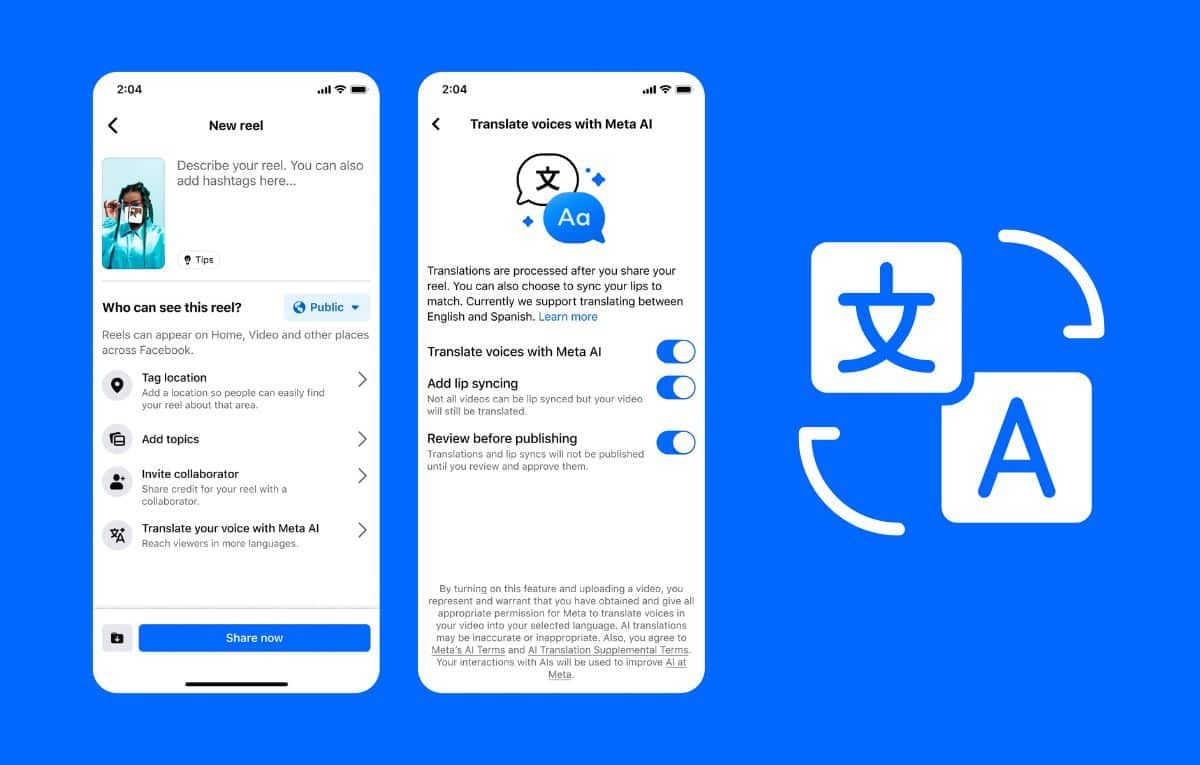 وتتيح الخاصية لناشري مقاطع الفيديو القصيرة Reels تحويل أصواتهم إلى لغة أخرى مع إمكانية مزامنة حركة الشفاه، وهي الميزة التي استعرضها مارك زوكربيرج لأول مرة خلال مؤتمر Meta Connect 2024 العام الماضي.