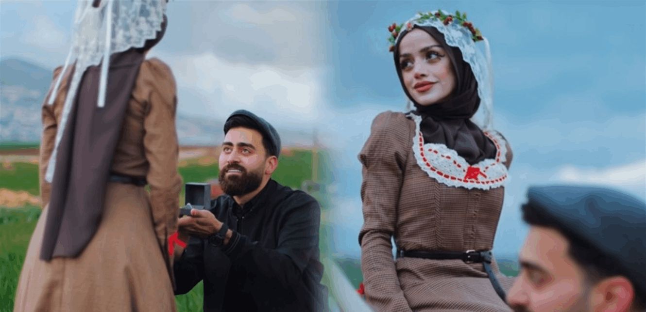 وظهرت عبير الصغير في فيديو نشرته على حسابها الرسمي على "إنستغرام"، وهي ترتدي فستاناً مستوحى من أزياء أوروبا القديمة وتقف وسط حقل مفتوح، بينما يقترب منها شاب على حصان أبيض، اسمه يوسف فرحات. (24)