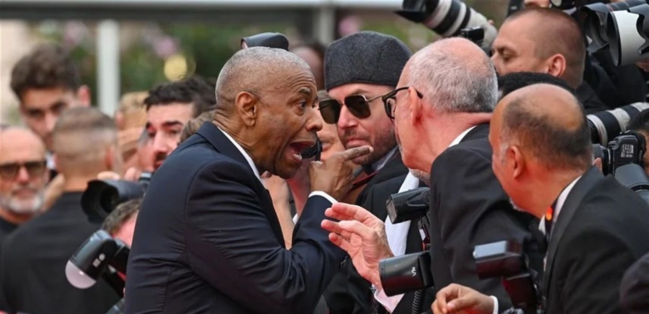 وأمسك المصور بذراع واشنطن على السجادة الحمراء للحصول على انتباهه، ثم اقترب الممثل من الرجل رافعاً إصبع السبابة وقال مراراً "توقف".