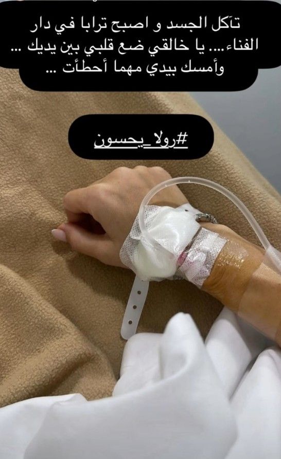 فقد أطلت رولا في الصورة على سرير المستشفى وعلّقت عليها قائلة: "تآكل الجسد وأصبح ترابا في دار الفناء. يا خالقي ضع قلبي بين يديك. وأمسك بيدي مهما أخطأت".