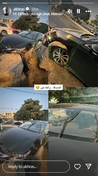 وشارك الأخرس جمهوره على "انستغرام"، صوراً لتضرّر سيارته جراء حادث السير، وقال: "الحمدلله، ولعله خير".