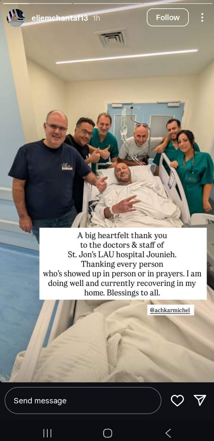 طمأن الكابتن السابق لمنتخب لبنان في كرة السلّة إيلي مشنتف مُحبيه على وضعه الصحيّ، ونشر صورة من داخل المستشفى مع الأطباء.