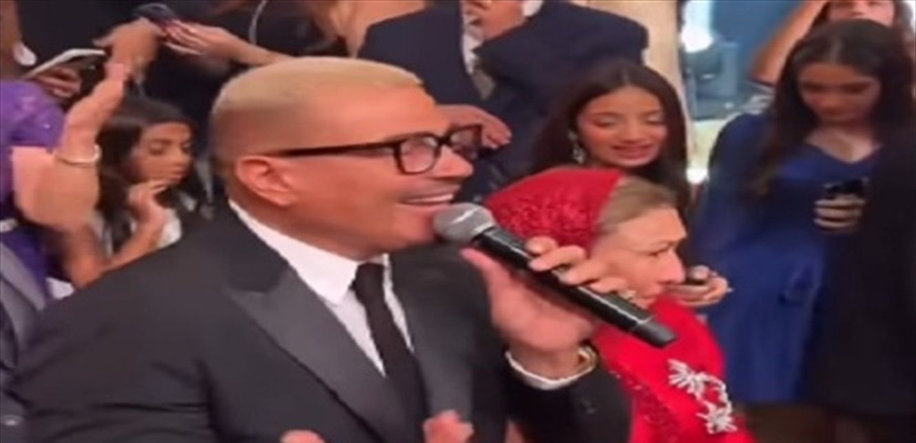 اقتحمت سيّدة مسنّة المسرح، أثناء غناء الفنان عمرو دياب، خلال حفل زفاف.