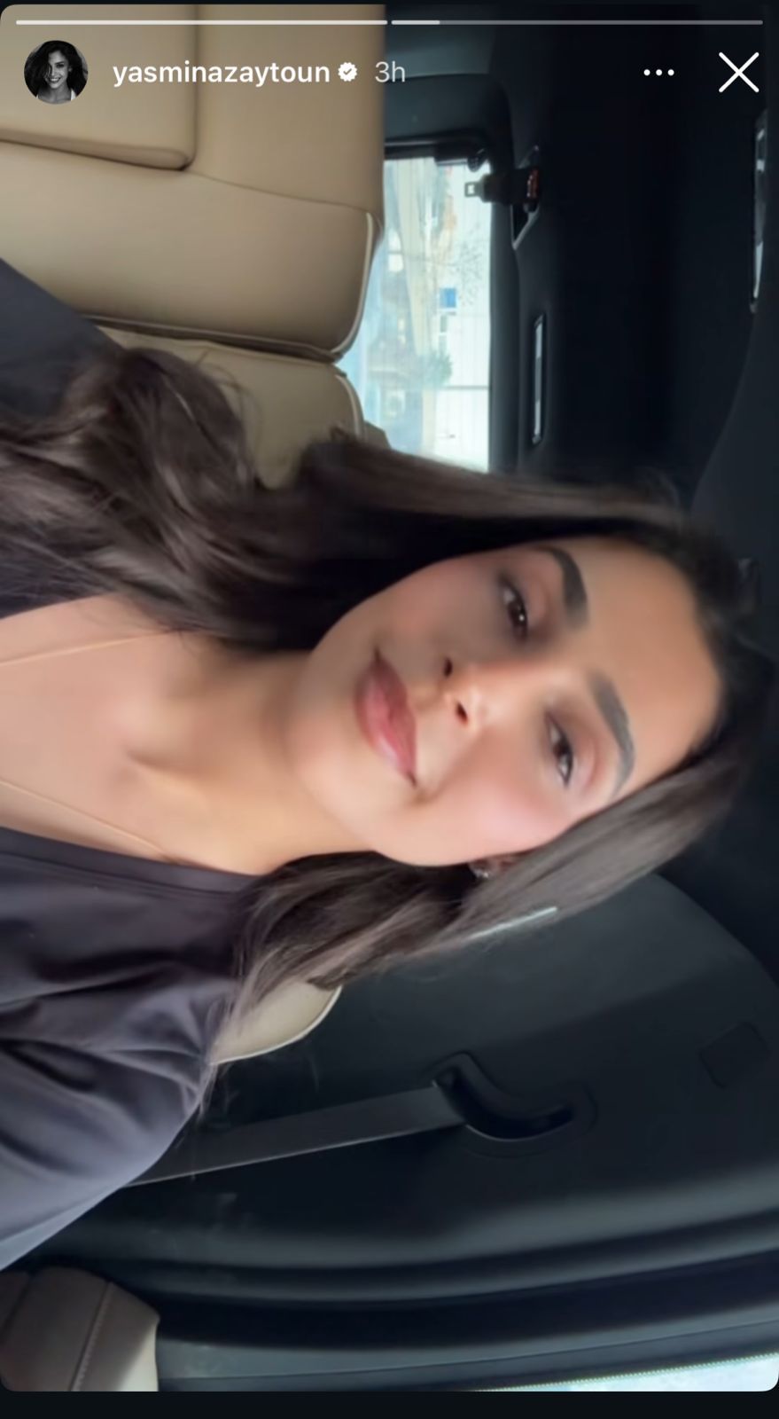 نشرت ياسمينا زيتون مقطع فيديو عبر خاصية “الستوري” على حسابها في “إنستغرام”، ظهرت فيه داخل سيارة وهي تطل بإطلالة طبيعية وبسيطة، ما لاقى تفاعلاً واسعاً من متابعيها على مواقع التواصل الاجتماعي.