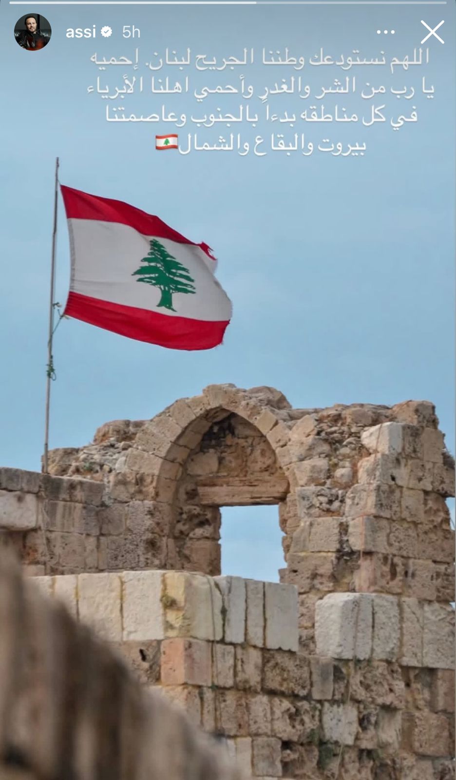 «اللهم نستودعك وطننا الجريح لبنان. احمه يا رب من الشر والغدر، واحمِ أهلنا الأبرياء في كل مناطقه، بدءاً بالجنوب وعاصمتنا بيروت والبقاع والشمال».
