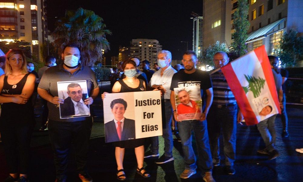 تجمّع أهالي ضحايا انفجار الرابع من آب عند البوابة رقم 9 لمرفأ بيروت للمطالبة بإطفاء الحريق المندلع بإهراءات القمح.