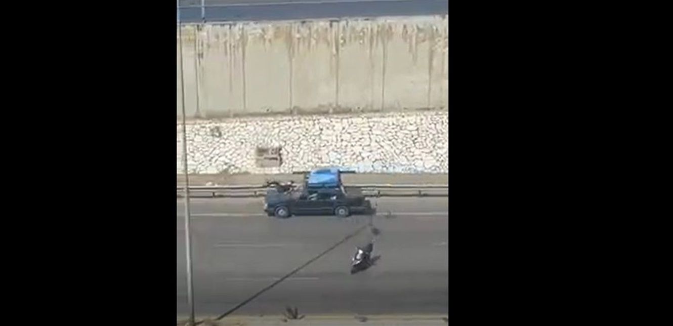 أظهر مقطع فيديو سائقاً يدهس لصّين بسيارته عند أوتوستراد الأسد، بعدما اعترضا طريقه بهدف سرقته.