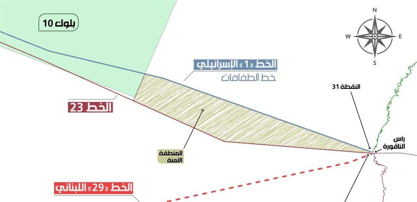 وعلمت «الأخبار» أن الفريق العسكري الذي تولى درس الاقتراح أوصى بأن يبدأ الخط الجديد من نقطة رأس الناقورة، وألا يتجاوز البلوك رقم 10 فتكون حدوده بداية حدود البلوك، وهذا ينسجم مع ما سبق لنائب رئيس مجلس النواب الياس بو صعب أن أعلنه حيال ضمان ألا يتنازل لبنان عن أي جزء من بلوكاته. كما يعني تقلص «المنطقة العازلة» التي يطالب العدو بضمانها إلى أقل من 3 كلم مربعة. عليه لا يزال النقاش عند نقطة انطلاق الخط. وفي حين بات المعنيون بصدد القبول بالمنطقة «معدلة»، انحصر النقاش في ماهيتها. إذ يفضل التقنيون أن تشتمل على المياه من دون بلوغ البلوكات، أي في المنطقة الفارغة ما بين اليابسة والبلوك 10، وضرورة انطلاق أي خط من رأس الناقورة لضمان النقاط البرية. في المقابل تجرى مشاورات حول مدى إمكان الانطلاق من النقطة التي قدمها هوكشتين (أي النقطة 31 في البحر الخاصة بالخط 1) مقابل الحصول على ضمانات تحفظ النقاط البرية اللبنانية من جهة، ولا تجعل «المنطقة العازلة» تحت «السيادة الإسرائيلية» إنما تحت إشراف اليونيفيل.