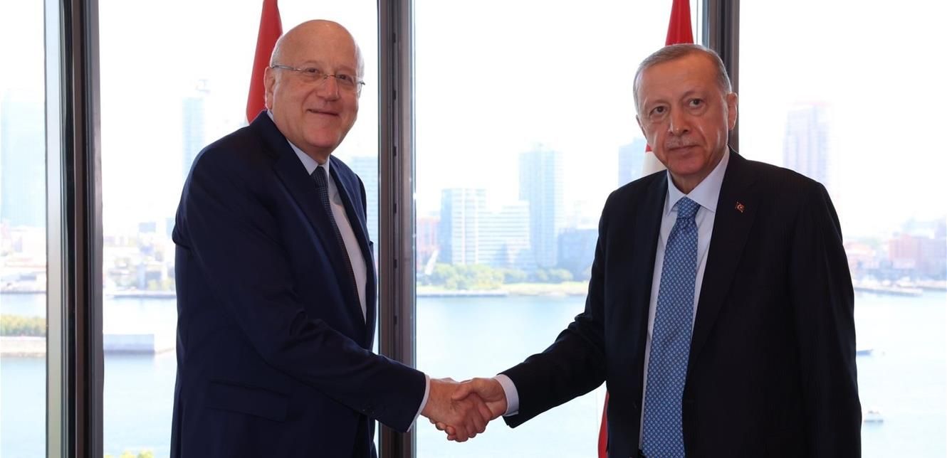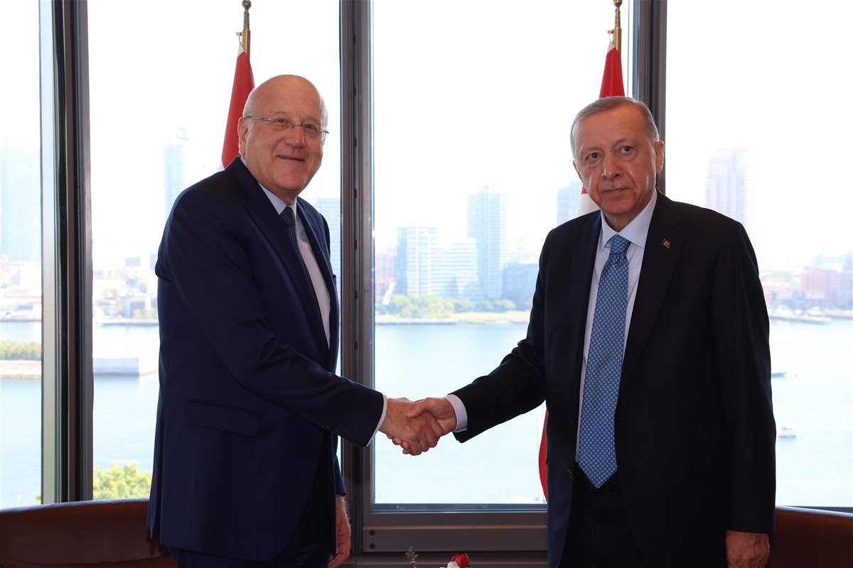 إستقبل الرئيس التركي رجب طيب أردوغان رئيس الحكومة نجيب ميقاتي بعد ظهر اليوم في "بيت تركيا" في نيويورك.