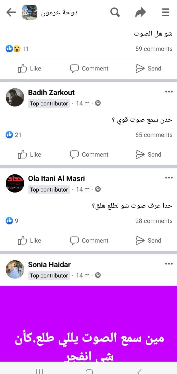أفاد ناشطون عبر مواقع التواصل الإجتماعيّ عن سماع صوت إنفجارٍ قوي في مناطق دوحة عرمون، خلدة، الناعمة، جنوب العاصمة بيروت.