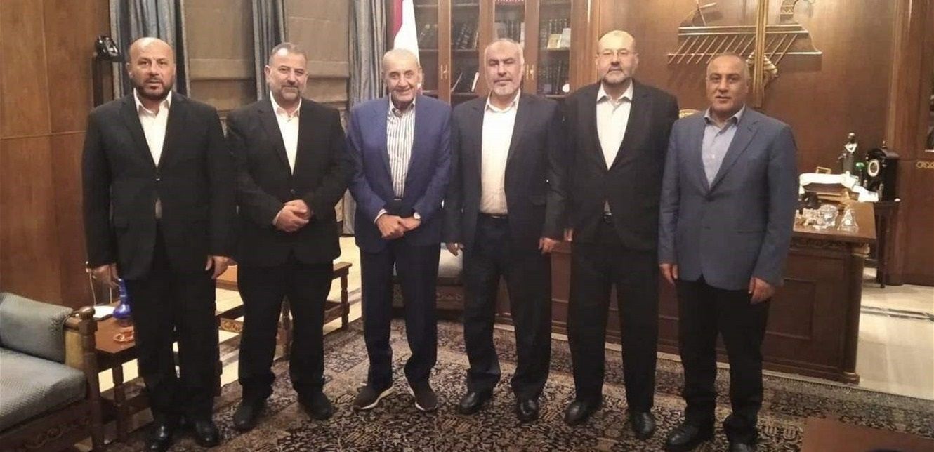 استقبل رئيس مجلس النواب نبيه بري في مكتبه بعين التينة، اليوم السبت، وفداً قيادياً من حركة المقاومة الإسلامية حماس، برئاسة نائب رئيس المكتب السياسي للحركة الشيخ صالح العاروري، في حضور عضو المكتب السياسي للحركة غازي حمد، ومسؤول دائرة العلاقات الوطنية في الخارج علي بركة، وممثل الحركة في لبنان أحمد عبد الهادي، ومسؤول العلاقات الفلسطينية في حركة "أمل" محمد الجباوي.